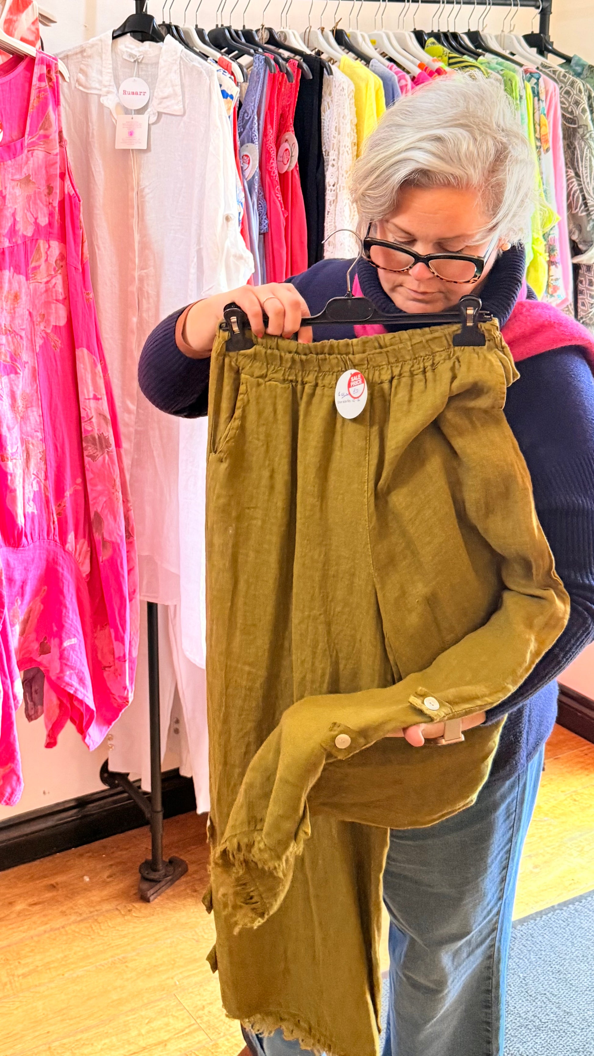 Beautiful linen trousers with fringe & button details