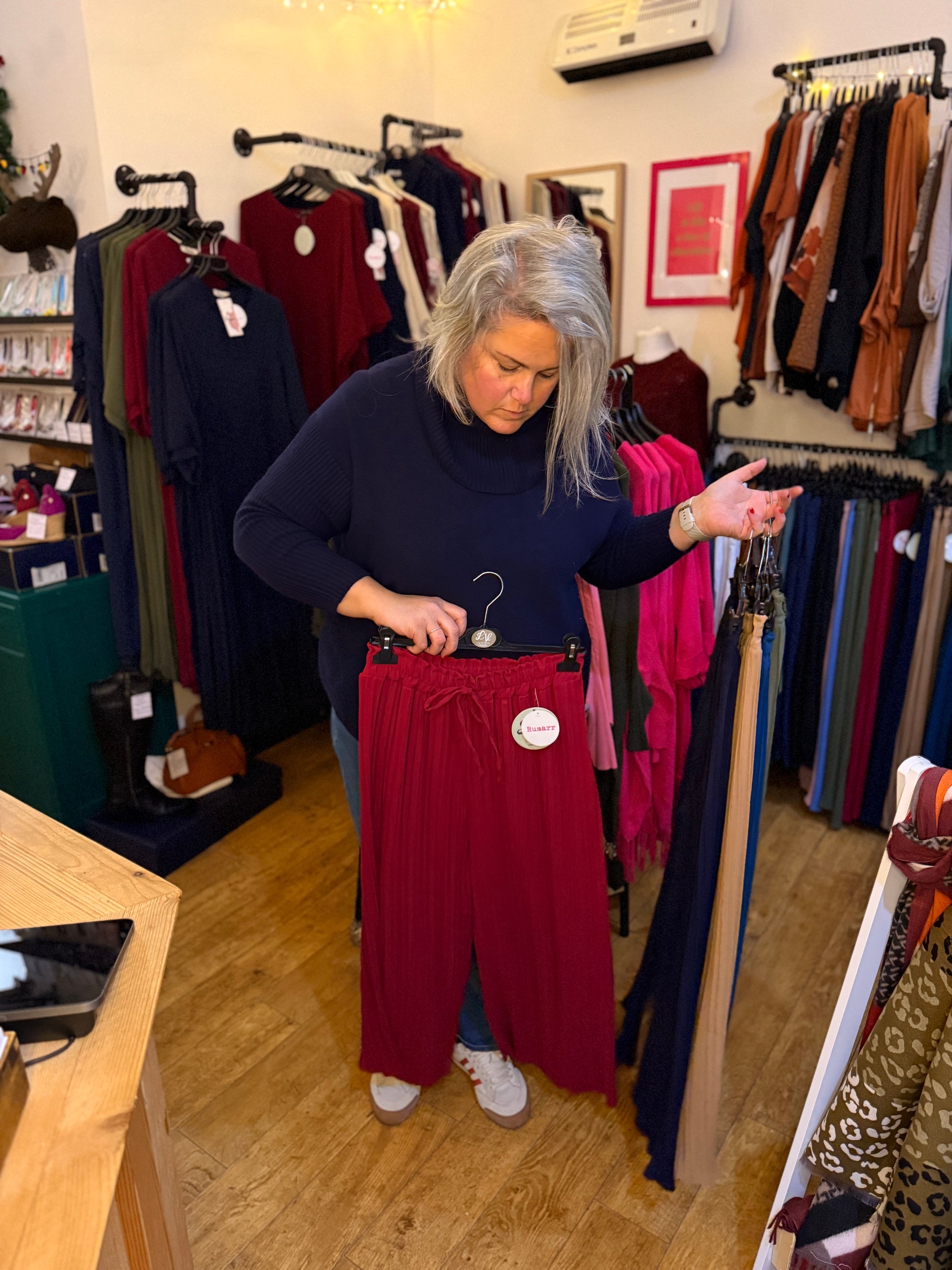 These lightweight trousers feature pleats and elasticated waist for a comfortable and flattering fit. Perfect for adding a touch of personality to your wardrobe. (But seriously, who doesn't love a good pair of pleats?!)